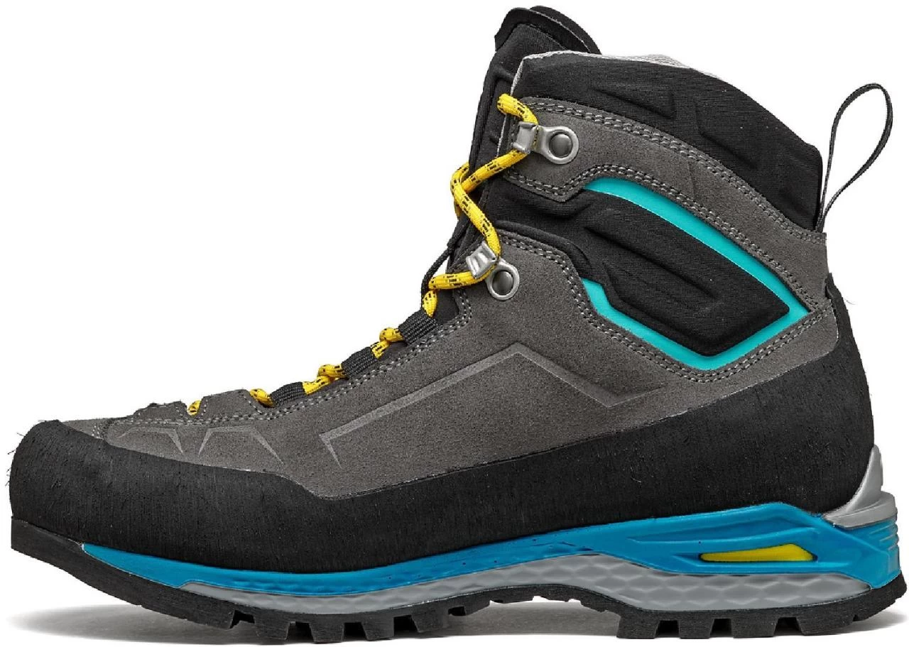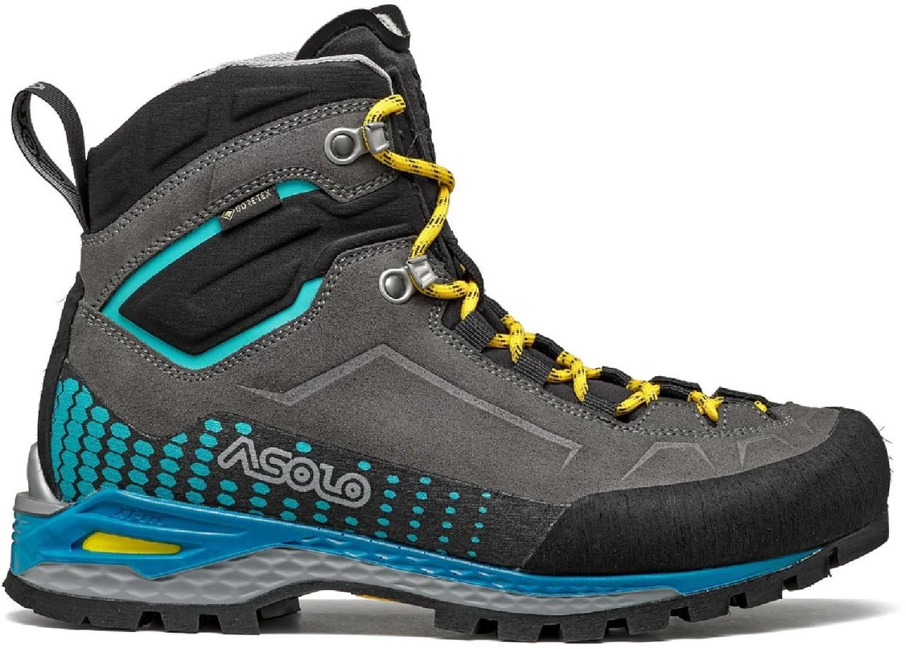 The light and comfortable mid-cut Asolo Freney EVO Mid LTH GV mountaineering boots for women equip you for alpine hikes, via ferrata, snow travel and treks with heavy packs.