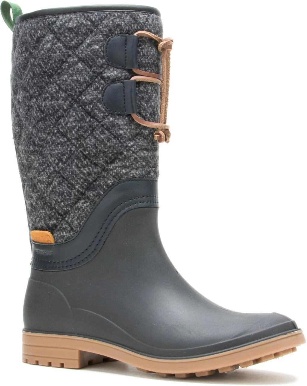 - Water-resistant quilted flannel uppers with decorative leather laces