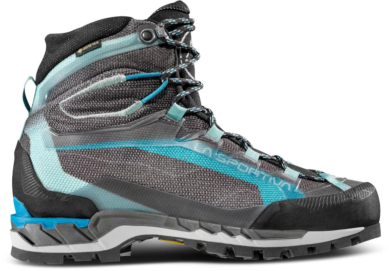 Hybrid crampon-compatible and bridging the gap between mountaineering and backpacking, mountain guides, SAR teams and backpackers alike will appreciate the La Sportiva Trango Tech GTX women’s boots.