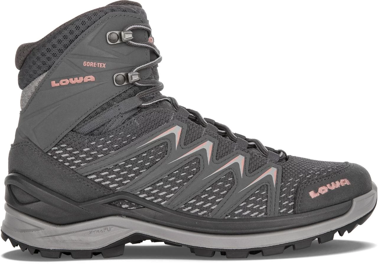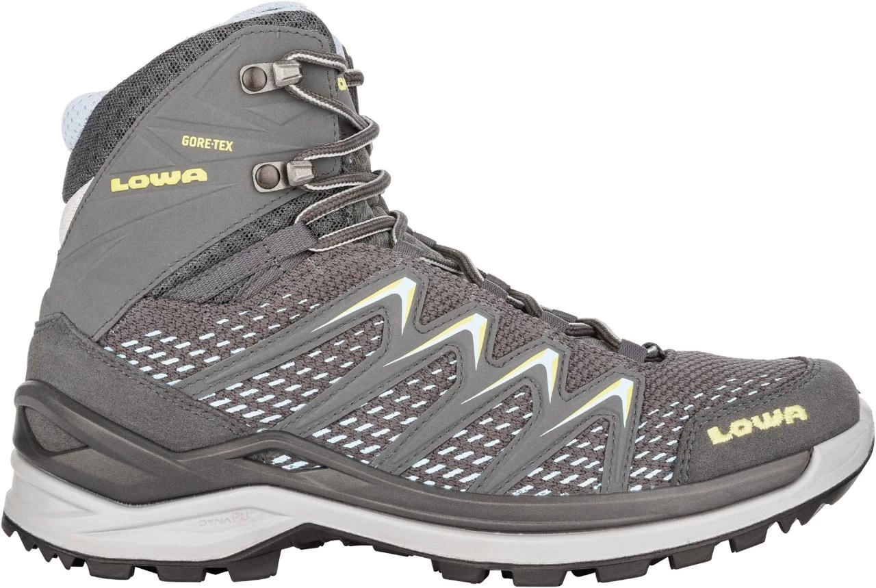 LOWA cut weight and streamlined their design for these women’s LOWA Innox Pro GTX Mid hiking boots. They’re ideal for fastpacking or anytime you want to go fast and light, but still want stability.
