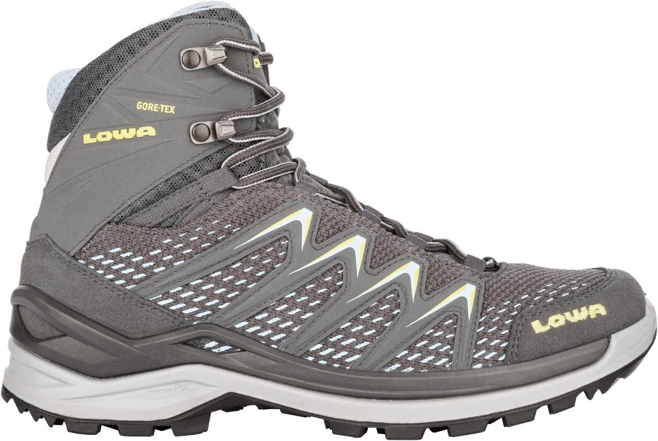Ideal for fast-packing, do-it-in-a day trips or anytime you want to travel fast and light, Lowa Innox Pro GTX Mid women’s hiking boots offer hiking boot performance with lightweight sneaker ease.