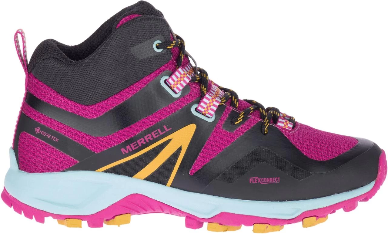 Move quickly on the trails in the women’s Merrell MQM Flex 2 Mid GORE-TEX hiking boots. Inspired by trail runners but made to hike, they’re fast up front, protective in back and ready for wet weather.