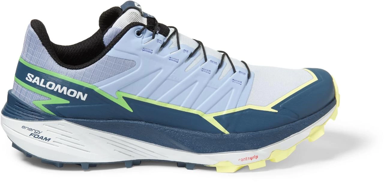 Take on rugged trails with mud, slick roots and loose rocks in the women’s Salomon Thundercross trail-running shoes. They’re built to create a smooth ride so you can confidently cruise through runs.